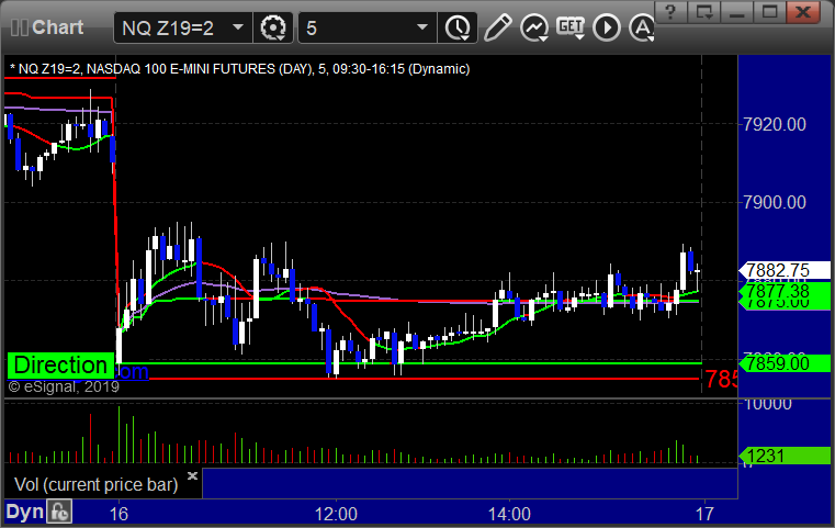 As usual, let’s start by taking a look at the ES and NQ with our market directional lines, VWAP, and Comber on the 5-minute chart from today’s session: