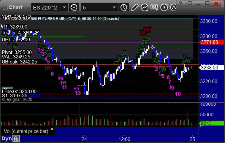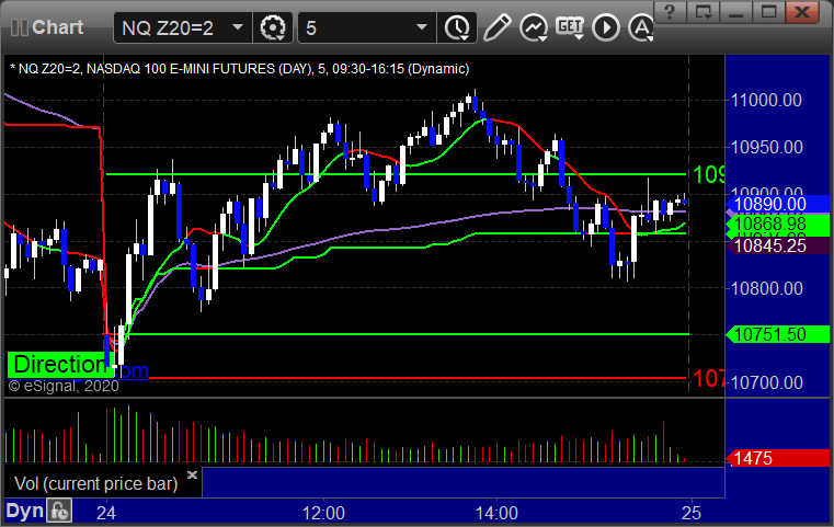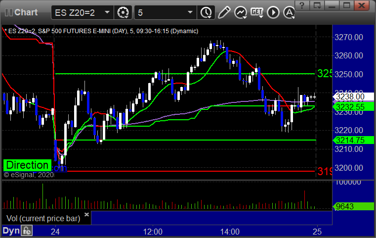 As usual, let’s start by taking a look at the ES and NQ with our market directional lines, VWAP, and Comber on the 5-minute chart from today’s session: