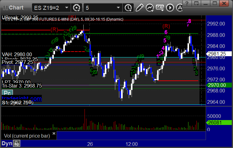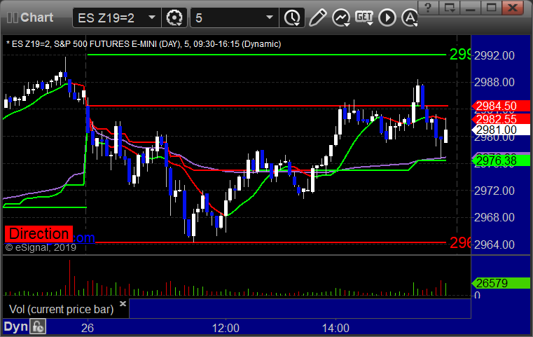 As usual, let’s start by taking a look at the ES and NQ with our market directional lines, VWAP, and Comber on the 5-minute chart from today’s session: