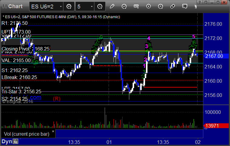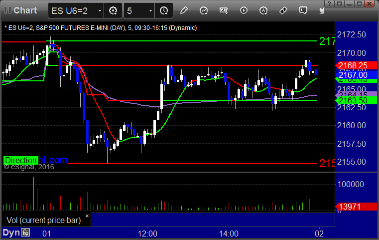 As usual, let’s start by taking a look at the ES and NQ with our market directional lines, VWAP, and Comber on the 5-minute chart from today’s session: