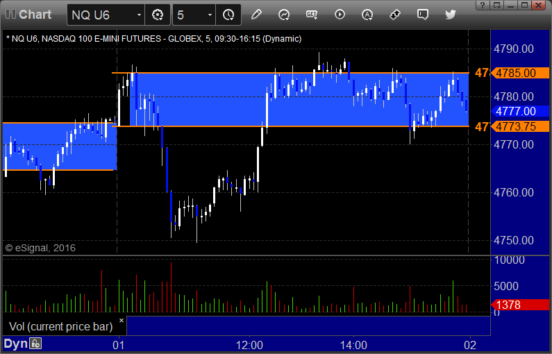 NQ Opening Range Play triggered long at A and worked enough for a partial then triggered short at B and worked: