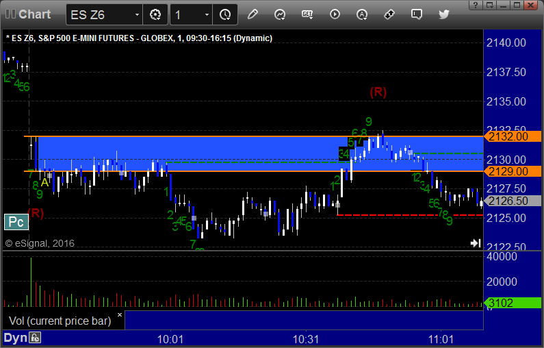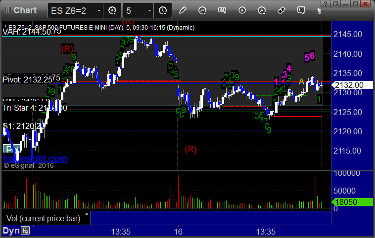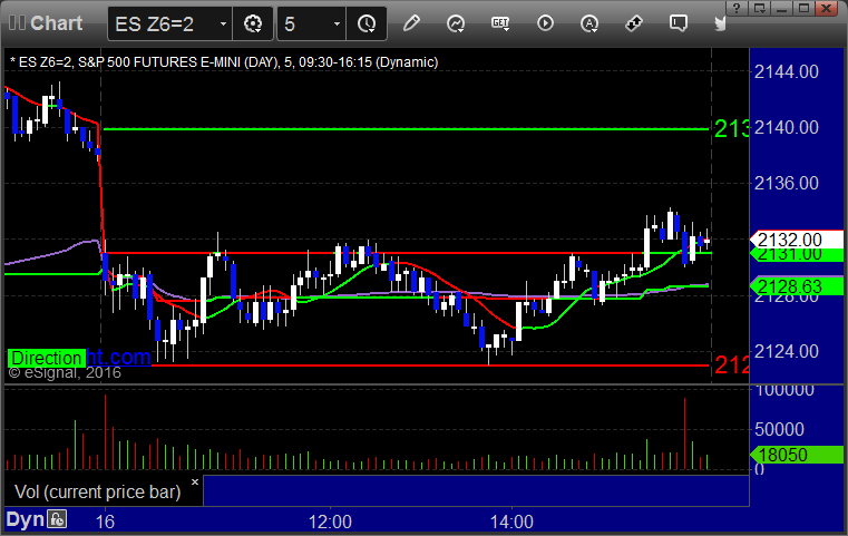My call triggered long at A at 2133.00 and never went to first target or stop, closed for 2 ticks for end of session:
