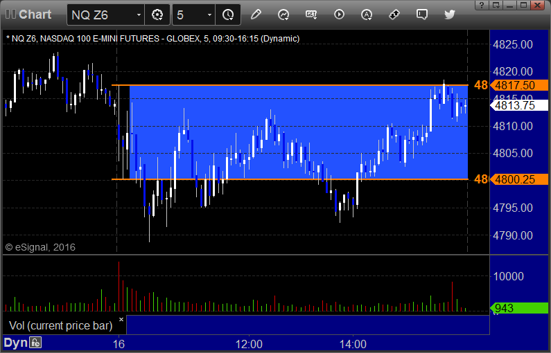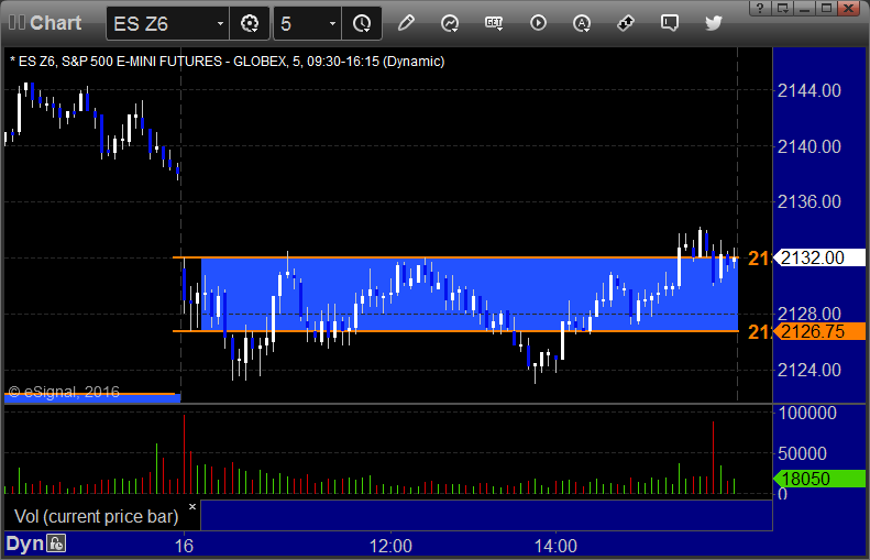 Pretty much as expected for triple expiration. We gapped down, which is fine, traded a lot of volume early for nothing, and stuck in a 10-point ES range until late in the session when we tried to break out and fill the gap but still went nowhere. NASDAQ volume was 2.6 billion shares. Opening Ranges were mixed, and one other trade ran out of time. See ES section below.