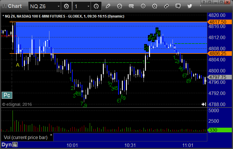 NQ Opening Range Play triggered short at A and stopped because we used the midpoint or else it would have worked: