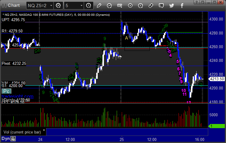 Winners and losers, but a nice setup that eventually led to a big winner in the ES. Opening range plays also worked well. See all section below. NASDAQ volume closed at 1.8 billion shares and the market closed flat.