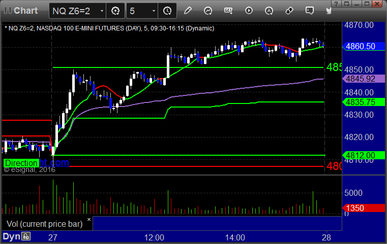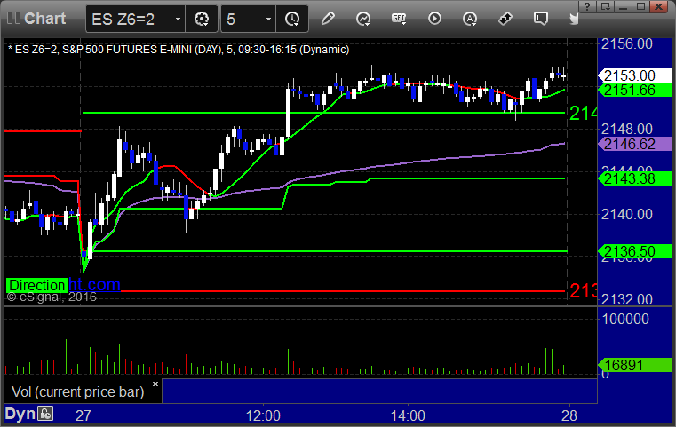 As usual, let’s start by taking a look at the ES and NQ with our market directional lines, VWAP, and Comber on the 5-minute chart from today’s session: