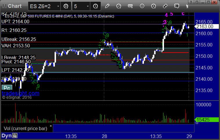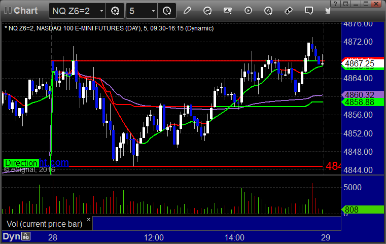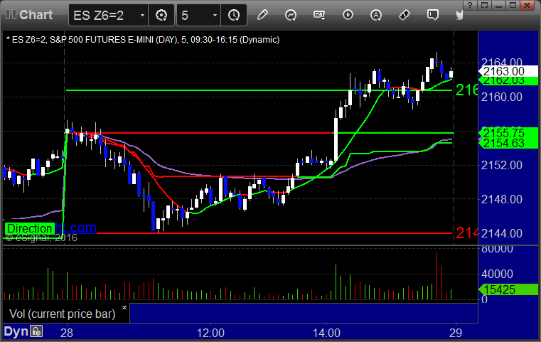 As usual, let’s start by taking a look at the ES and NQ with our market directional lines, VWAP, and Comber on the 5-minute chart from today’s session: