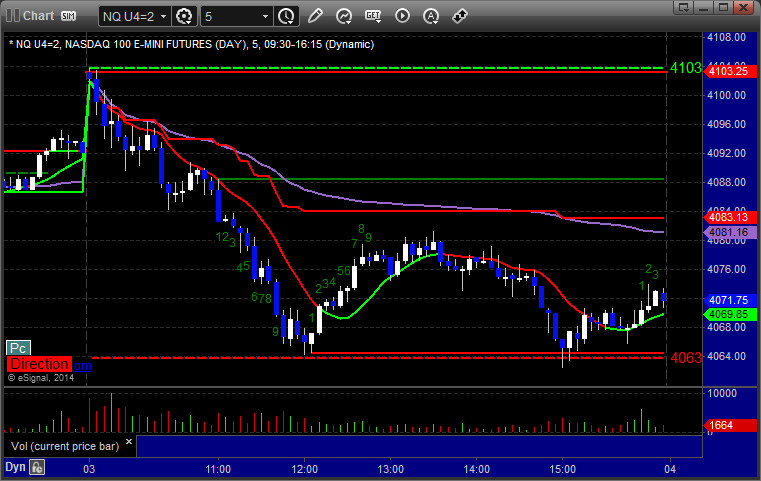 A clean entry on the ES using the Value Area and the Pressure Threshold line worked. The markets gapped up and headed lower, closing on 1.73 billion NASDAQ shares. Ranges are definitely improving.