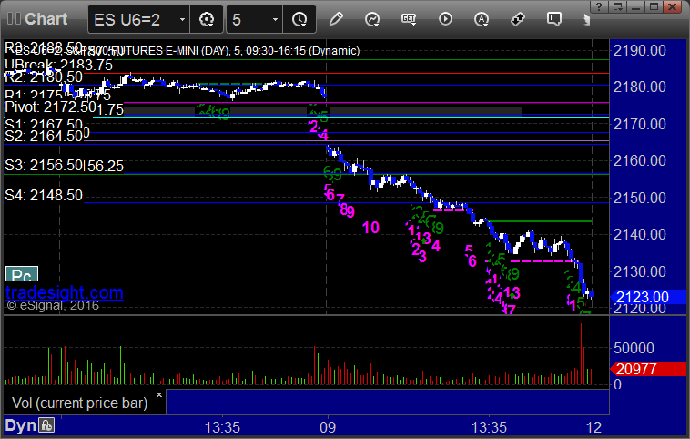 As usual, let’s start by taking a look at the ES and NQ with our market directional lines, VWAP, and Comber on the 5-minute chart from today’s session: