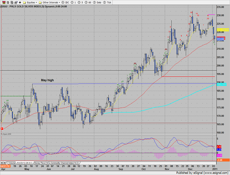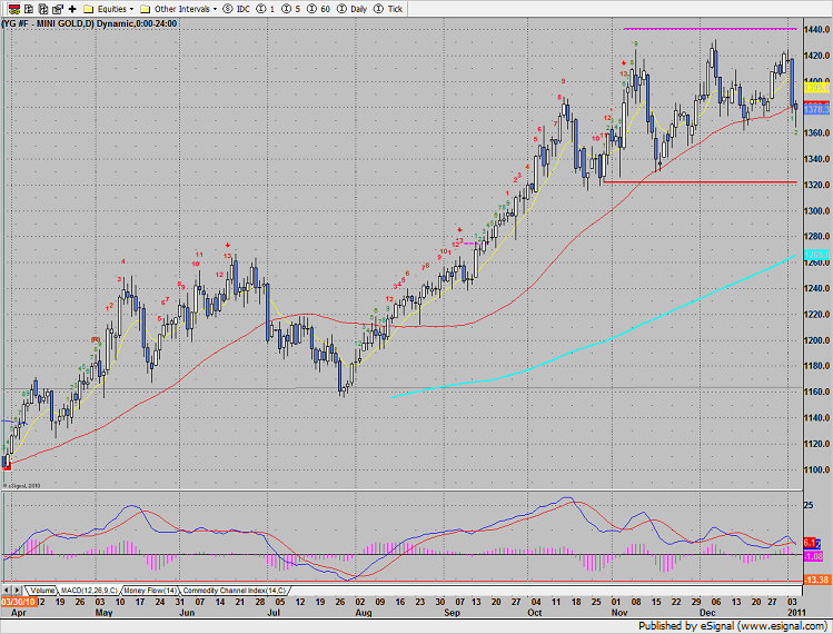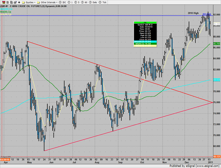 As discussed in the previous report oil was not expected to follow through to the downside Wednesday and it did not. Oil was higher on the day but unable to reclaim the 10ema or the 2010 high. The next breakdown should be sold and aggressive traders can look to sell rallies.
