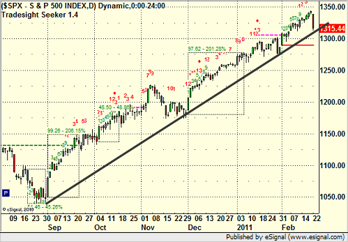 S&P lost 28. Note the uptrend line, which I have repeatedly said, “Let me know when this cracks, that’s the line that matters in terms of the market rolling”: