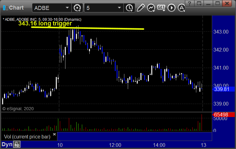 From the Messenger/Tradesight_st Twitter Feed, ADBE triggered long (with market support) and worked: