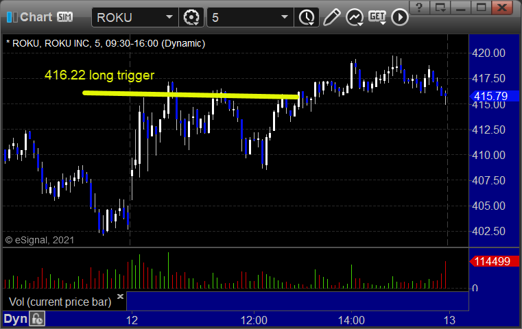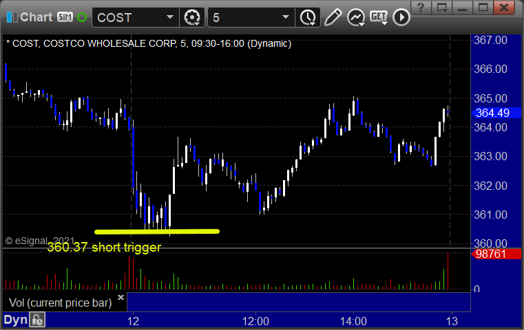 With each stock’s recap, we will include a (with market support) or (without market support) tag, designating whether the trade triggered with or without market directional support at the time. Anything in the first five minutes will be considered WITHOUT market support because market direction cannot be determined that early. ETF calls do not require market support, and are thus either winners or losers.
