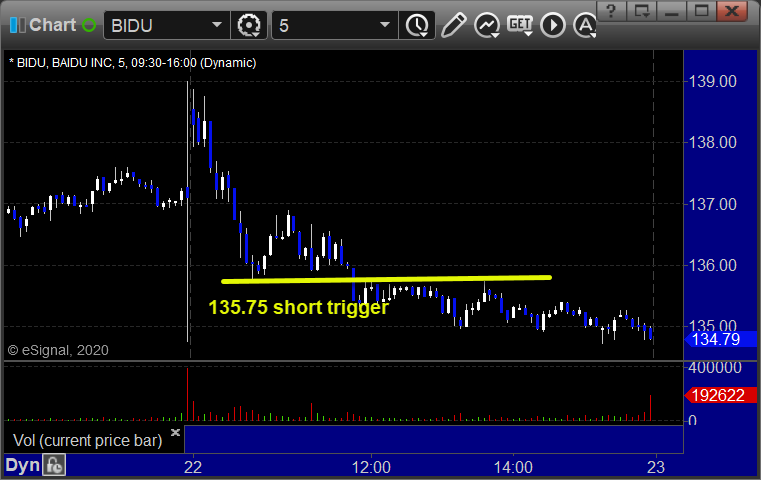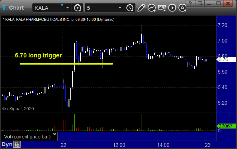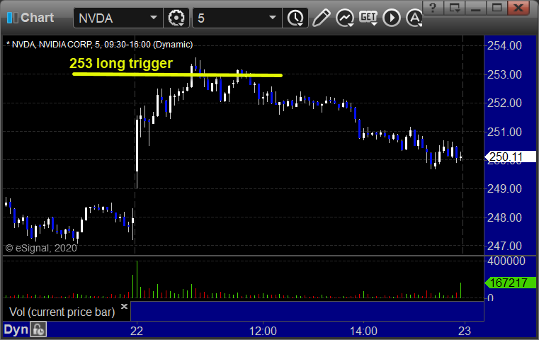 With each stock’s recap, we will include a (with market support) or (without market support) tag, designating whether the trade triggered with or without market directional support at the time. Anything in the first five minutes will be considered WITHOUT market support because market direction cannot be determined that early. ETF calls do not require market support, and are thus either winners or losers.