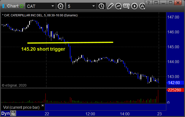 In total, that’s 5 trades triggering with market support, 3 of them worked, 2 did not, and the big winner was CAT.