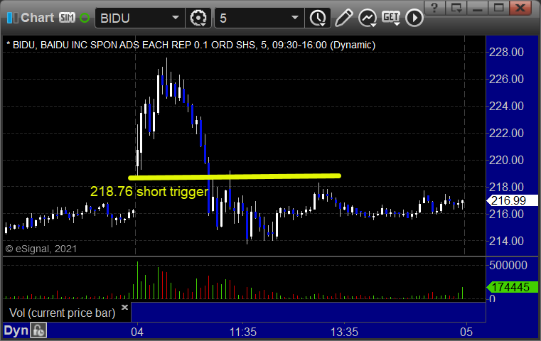 BIDU triggered short (with market support) and worked: