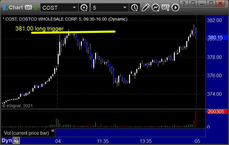 From the Messenger/Tradesight_st Twitter Feed, COST triggered long (without market support) and didn’t work: