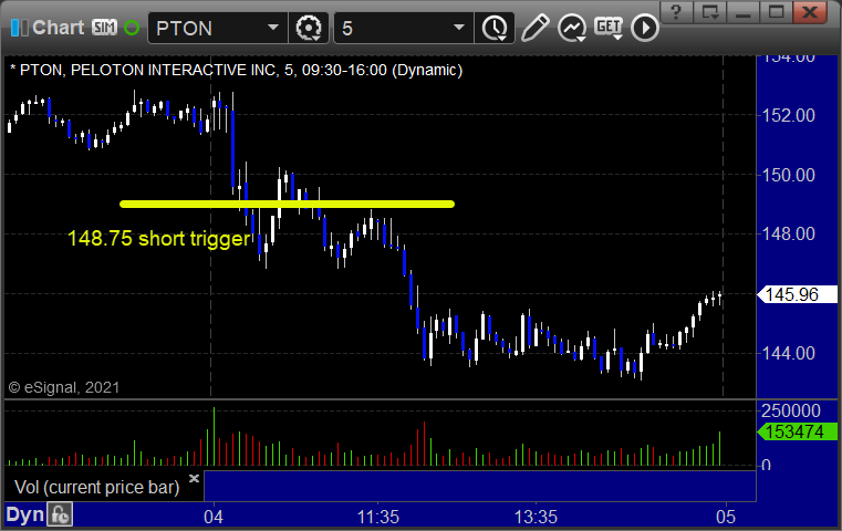 Rich’s PTON short triggered (with market support) and worked: