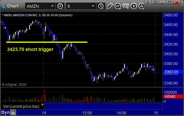 From the Messenger/Tradesight_st Twitter Feed, Rich’s AMZN triggered short (with market support) and worked great: