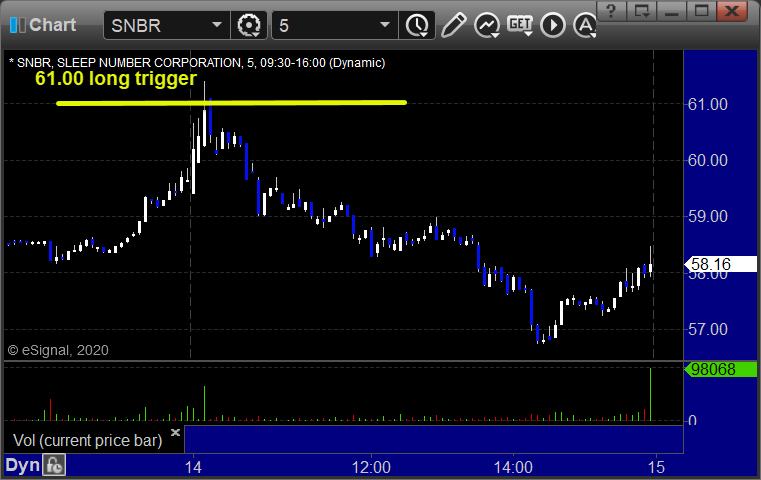 With each stock’s recap, we will include a (with market support) or (without market support) tag, designating whether the trade triggered with or without market directional support at the time. Anything in the first five minutes will be considered WITHOUT market support because market direction cannot be determined that early. ETF calls do not require market support, and are thus either winners or losers.