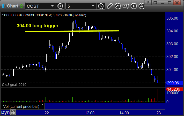 COST triggered long (with market support) and we kept it extremely tight for a $300 stock, but we will mark it as a loss: