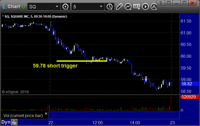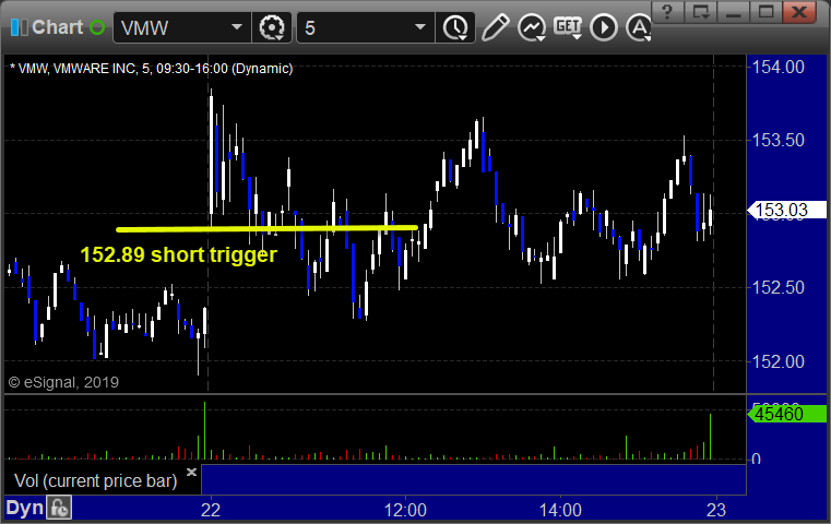 From the Messenger/Tradesight_st Twitter Feed, VMW triggered short (with market support) and we closed it for a couple of pennies, we won’t count it: