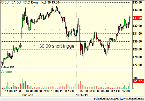 His BIDU triggered short (without market support due to opening five minutes) and didn’t work: