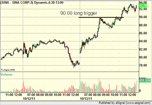 Rich’s SINA triggered long (with market support) and did not work, although it swept and went later and worked great: