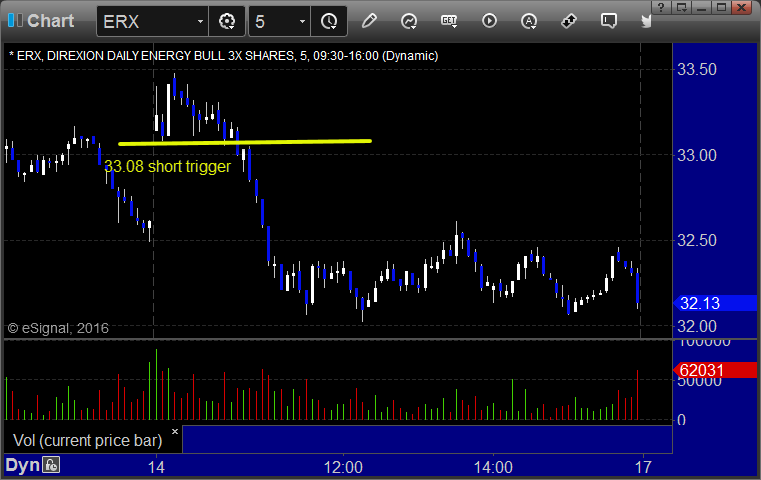 His ERX triggered short (ETF, so no market support needed) and worked great: