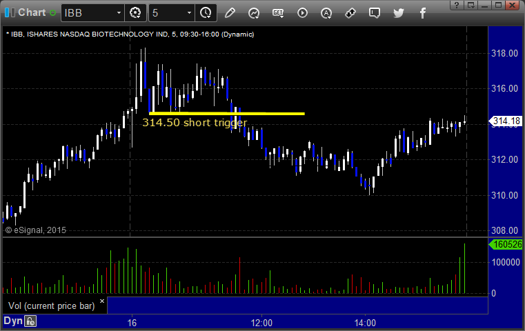 From the Messenger/Tradesight_st Twitter Feed, Rich’s IBB triggered short (ETF, so no market support needed) and worked: