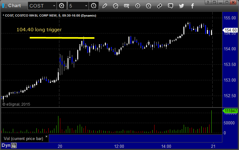 COST triggered long (with market support) and didn’t work, worked great later: