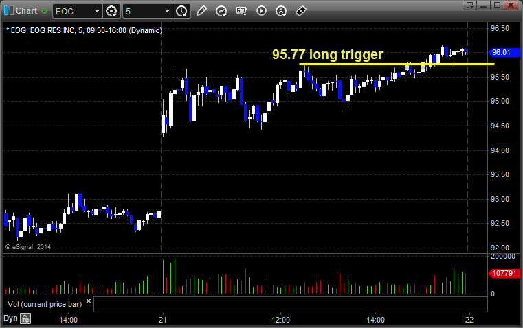 With each stock’s recap, we will include a (with market support) or (without market support) tag, designating whether the trade triggered with or without market directional support at the time. Anything in the first five minutes will be considered WITHOUT market support because market direction cannot be determined that early. ETF calls do not require market support, and are thus either winners or losers.