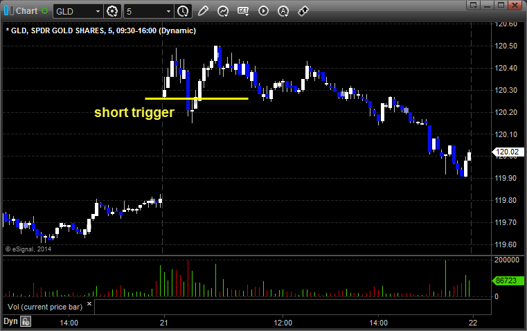 From the Messenger/Tradesight_st Twitter Feed, Rich’s GLD triggered short (ETF, so no market support needed) and didn’t work:
