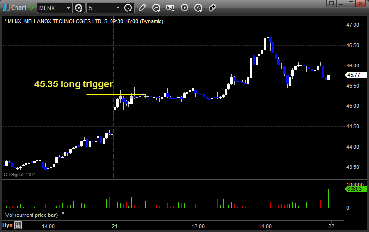 MLNX triggered long (with market support) and didn’t work initially, worked later in the day:
