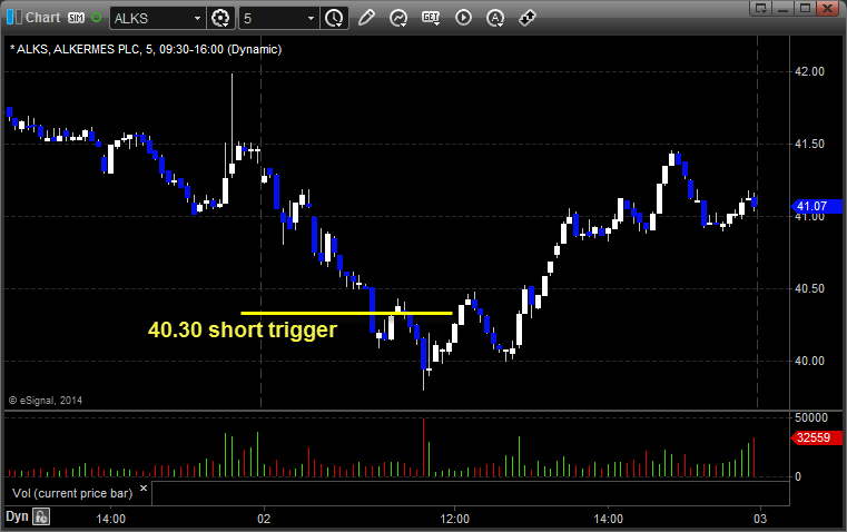 From the report, ALKS triggered short (with market support) and worked enough for a partial: