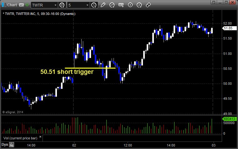 TWTR triggered short (with market support) and worked for the gap fill: