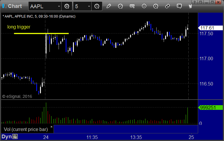 From the Messenger/Tradesight_st Twitter Feed, Rich’s AAPL triggered long (with market support) and didn’t work enough either way to count, closed $0.10 in the money: