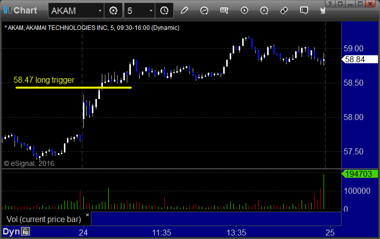 With each stock’s recap, we will include a (with market support) or (without market support) tag, designating whether the trade triggered with or without market directional support at the time. Anything in the first five minutes will be considered WITHOUT market support because market direction cannot be determined that early. ETF calls do not require market support, and are thus either winners or losers.