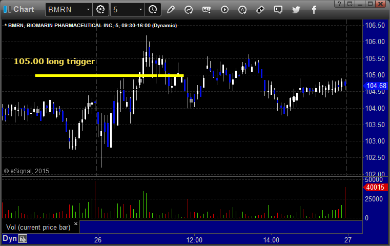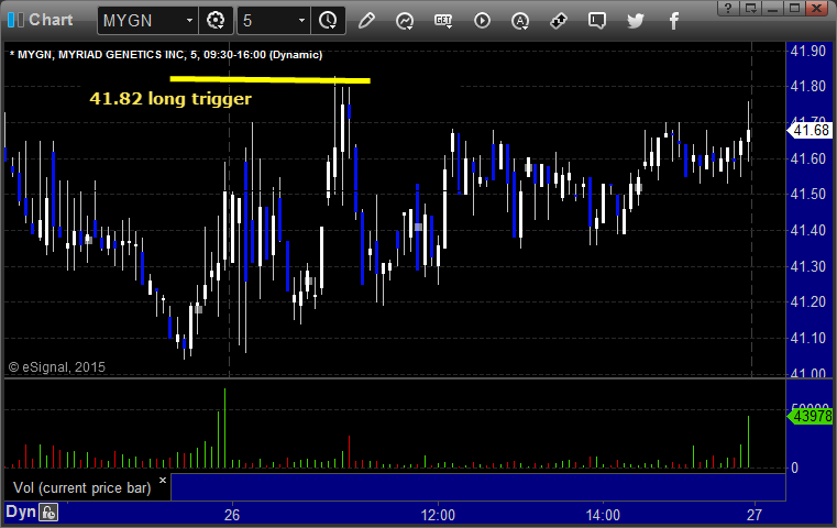 From the report, MYGN triggered long (with market support) and stopped one penny over the trigger:
