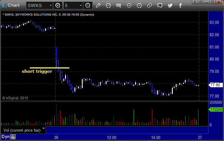 With each stock’s recap, we will include a (with market support) or (without market support) tag, designating whether the trade triggered with or without market directional support at the time. Anything in the first five minutes will be considered WITHOUT market support because market direction cannot be determined that early. ETF calls do not require market support, and are thus either winners or losers.