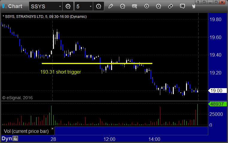 From the report, SSYS triggered short (with market support) and worked: