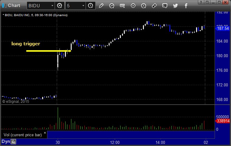 From the Messenger/Tradesight_st Twitter Feed, Rich’s BIDU triggered long (without market support) and worked enough for a partial: