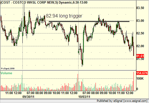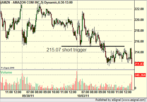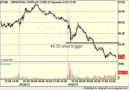 QLIK triggered short (without market support due to opening five minutes) and didn’t work (also triggered again later and worked):