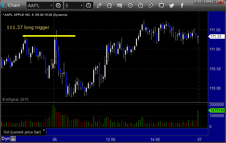 From the Messenger/Tradesight_st Twitter Feed, Rich’s AAPL triggered long (without market support) and didn’t work: