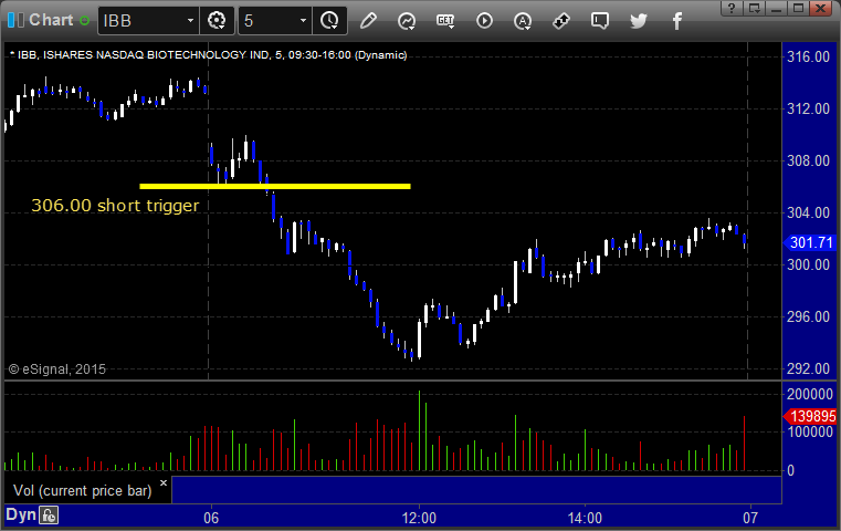 Rich’s IBB triggered short (ETF, so no market support needed) and worked: