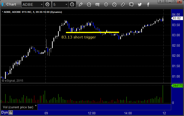His ADBE triggered short (with market support) and worked enough for a partial: