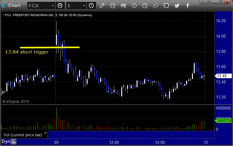 From the Messenger/Tradesight_st Twitter Feed, Rich’s FCX triggered short (without market support due to opening 5 minutes) and worked: