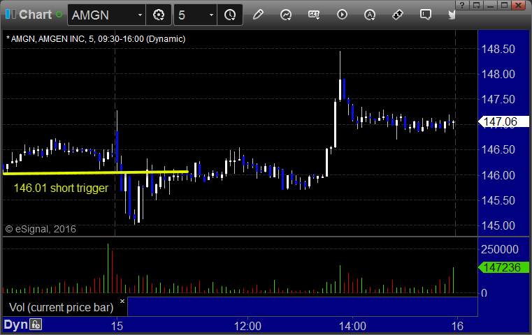 From the Messenger/Tradesight_st Twitter Feed, AMGN triggered short (without market support) and worked: