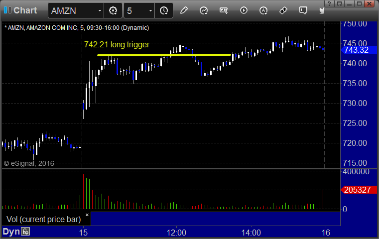 His AMZN triggered long (with market support) and worked: