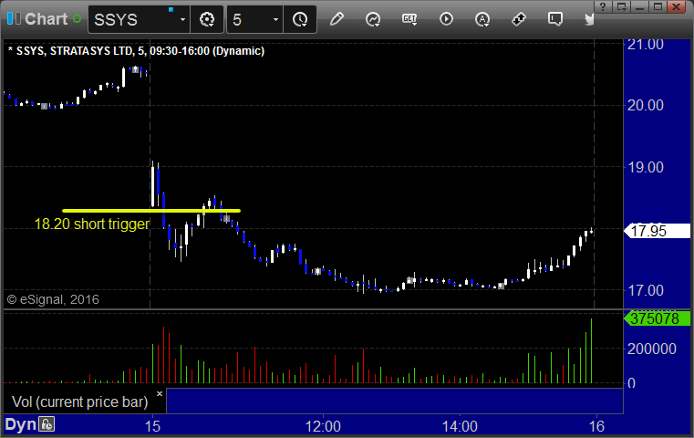 Rich’s SSYS triggered short (with market support) and worked: